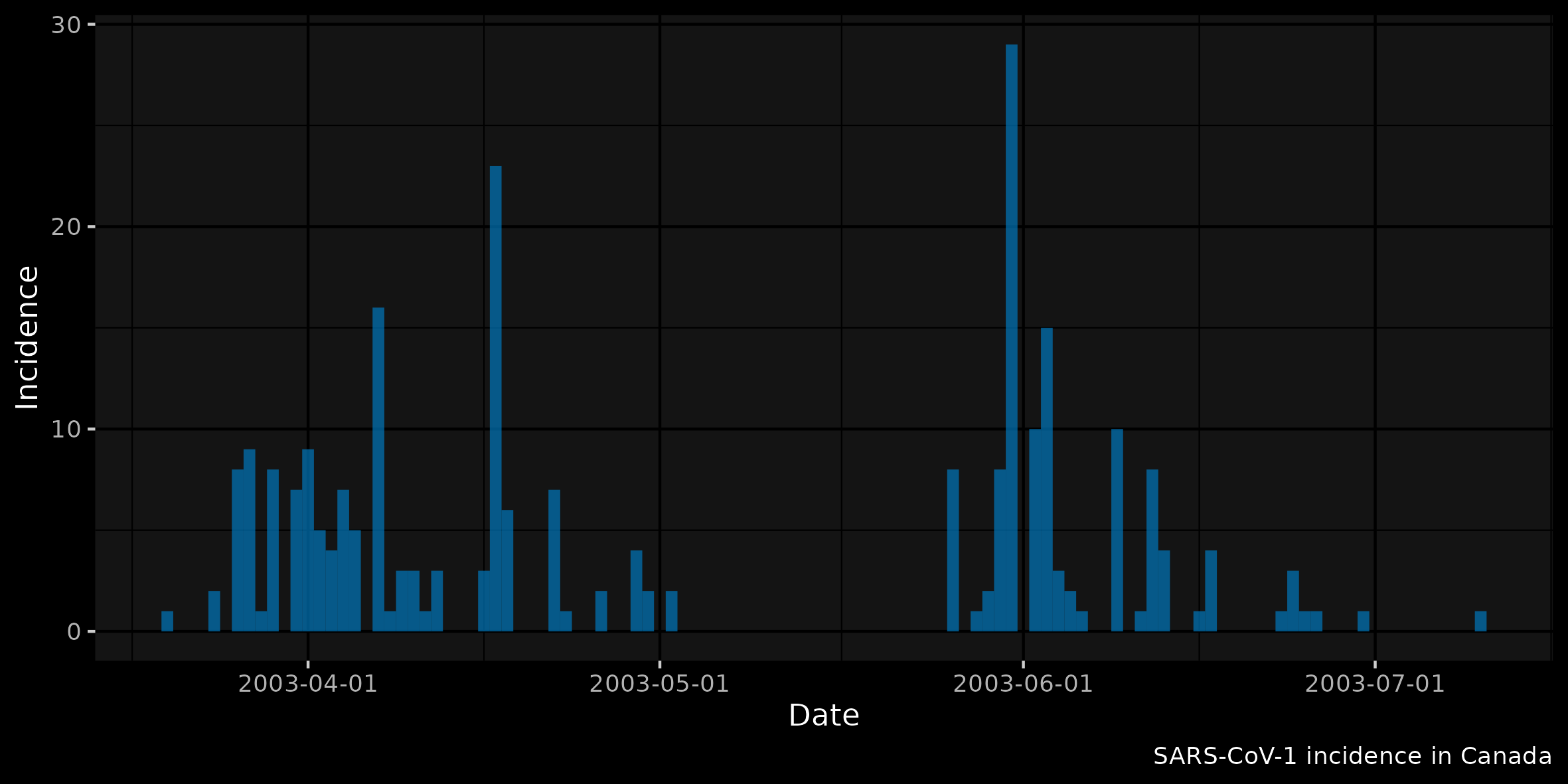 sprintf("SARS-CoV-1 incidence in %s", ctry)) +